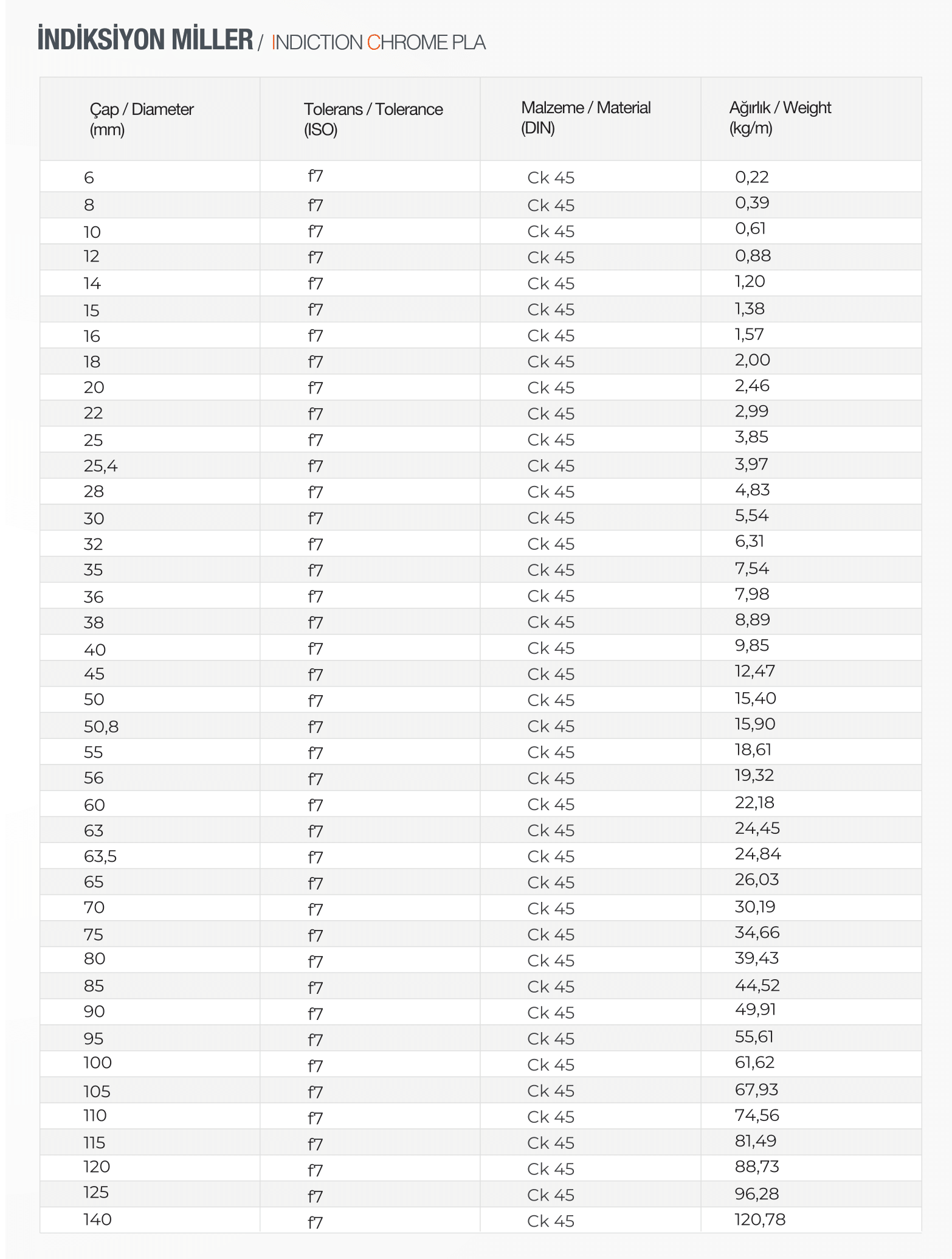 İNDİKSİYON SERTLEŞTİRİLMİŞ VE KROM KAPLAMALI ÇELİK BORULAR