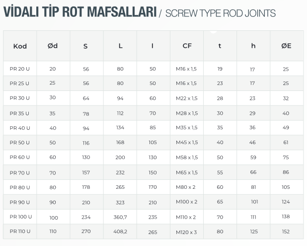 VİDALI TİP ROT MAFSALLARI